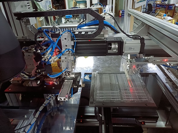 这是一款长铝条直线度检测和摆盘一体机,机器通过计算机视觉检测产品两个方向的平面度,剔除不良品,将合格品装入吸塑盘内。铝条长120mm,扁平型,易刮伤,该机采用无损上料方式,摆盘效率30个/分钟。