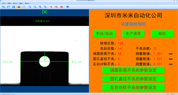 With vision system, this machine can check the position, symmetry, size, and flaws of the cylindrical pin holes at very high speed. This machine can automatically take a picture of the pin hole with an industrial camera, and t